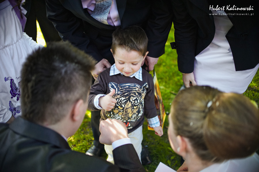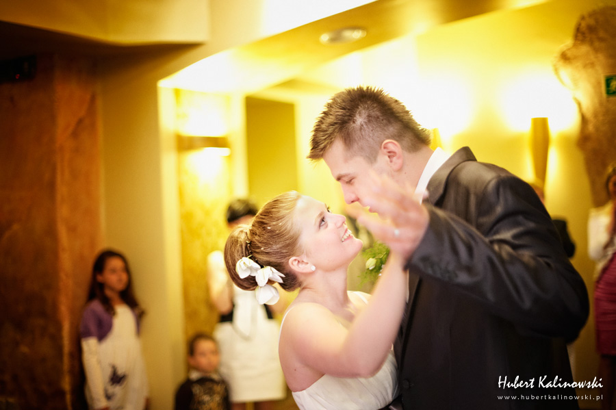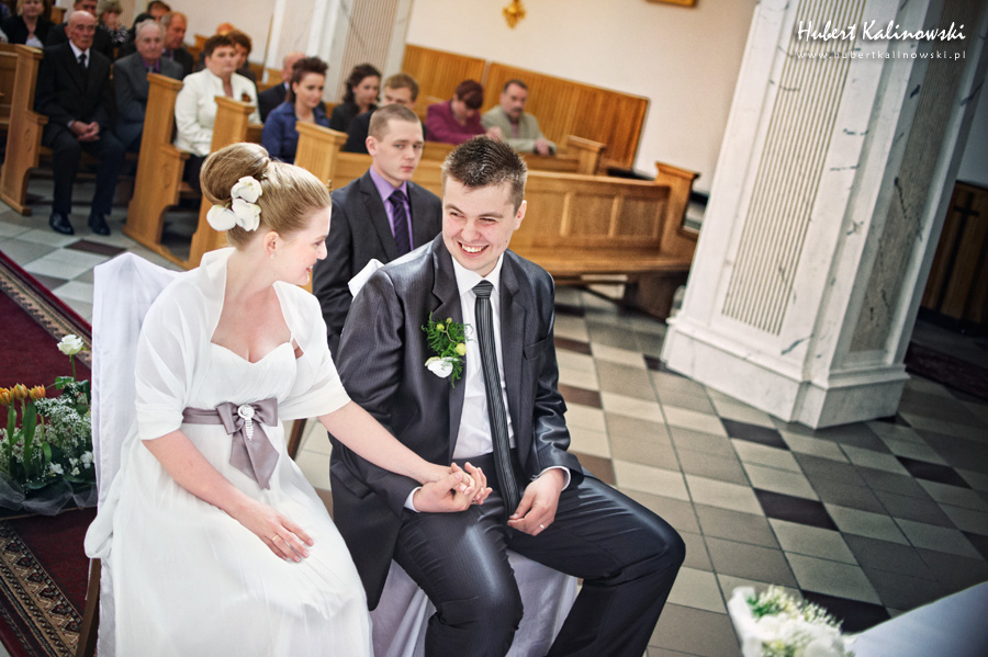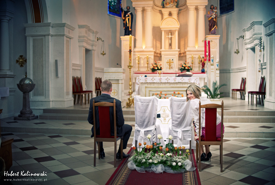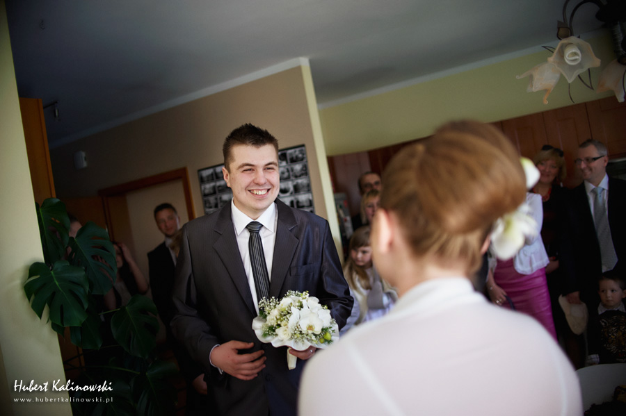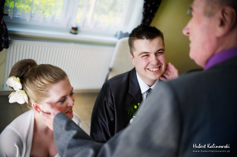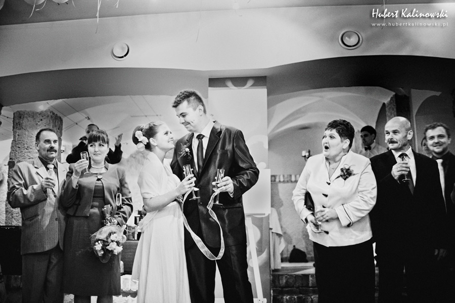 Dominika i Piotr to wspaniała para 🙂 Podoba mi się, że pomimo tego, że każdy z nich ma swój honor i swoje zdanie na temat jakiejś rzeczy, to szanują oni zdanie tej drugiej osoby i nic nie jest w stanie sprawić, że ta różnica będzie powodem czegoś złego. Złego, które ma jakiś wpływ na to co ich łączy i trzyma przy sobie. Są to ludzie, którzy nie potrafią sobie wyobrazić, jak mógłby wyglądać dzień bez tej drugiej osoby. Odkąd pamiętają, nie było takiego dnia. Zawsze są razem. Jak Flip i Flap, jak Tom i Jerry, jak Bolek i Lolek. Nie ma Dominiki bez Piotra. Nie ma Piotra bez Dominiki. Dziękuję Wam za zaproszenie na Wasz ślub 🙂