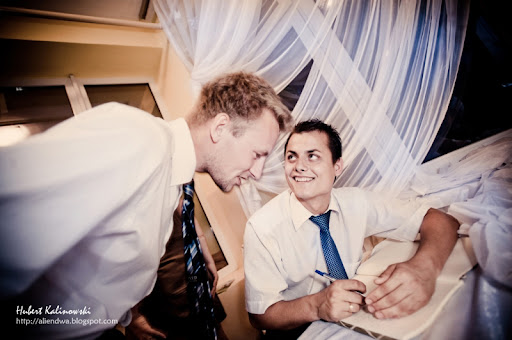 Marcin nie opuszczał Agaty na krok. Towarzyszył jej u fryzjera oraz podczas robienia makijażu. Agata odwzajemniała to uśmiechem i miłością. Przyznam, że czułem się wspaniale wśród tylu ich uśmiechów i radości. Ich miłość unosiła się w powietrzu i nasycała swoją wonią całą okolice, a radością zarażali wszystkich gości weselnych.