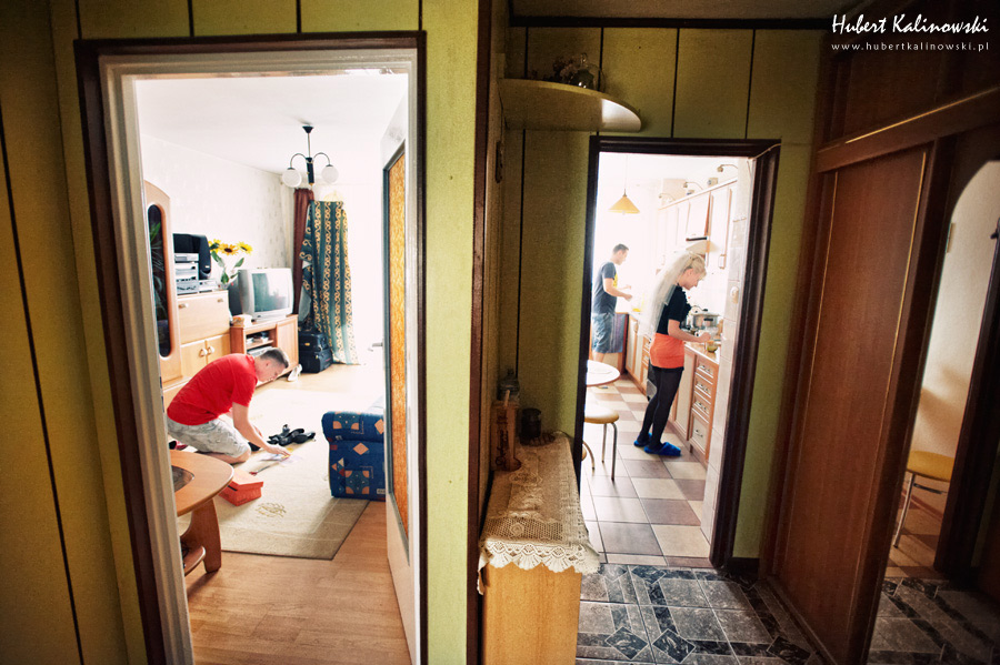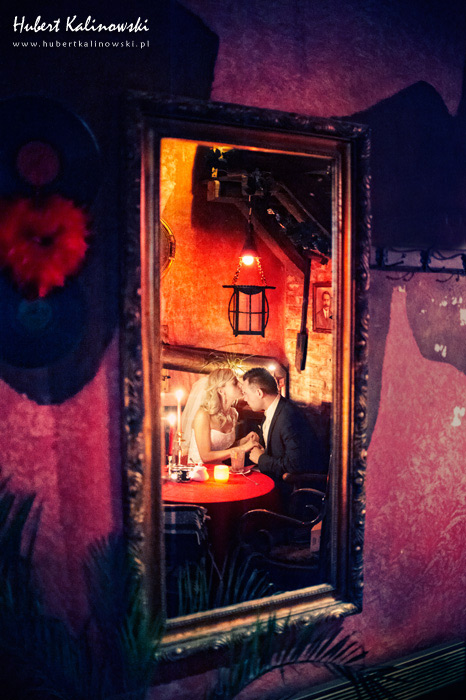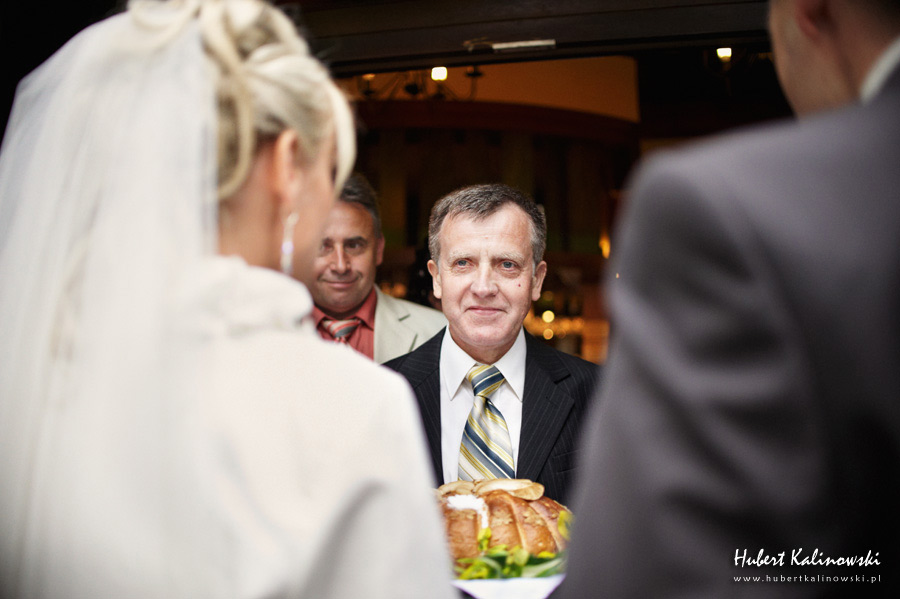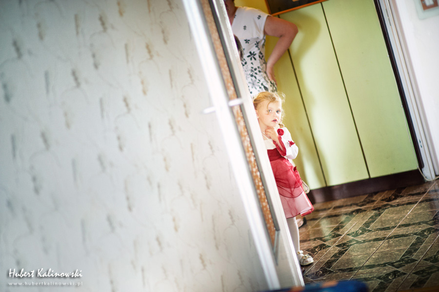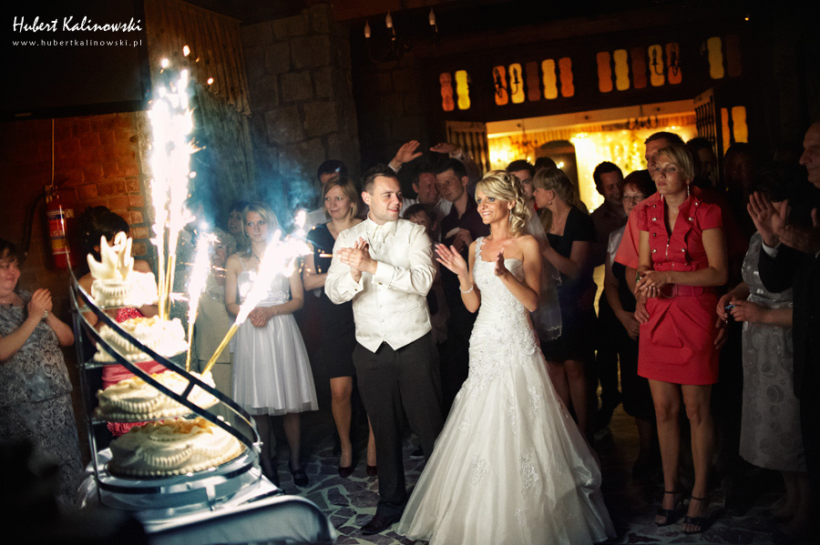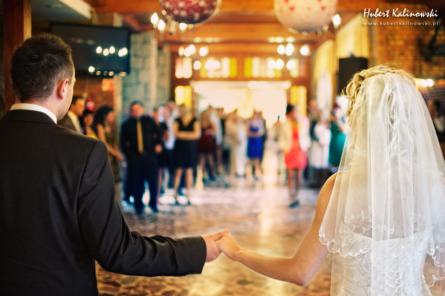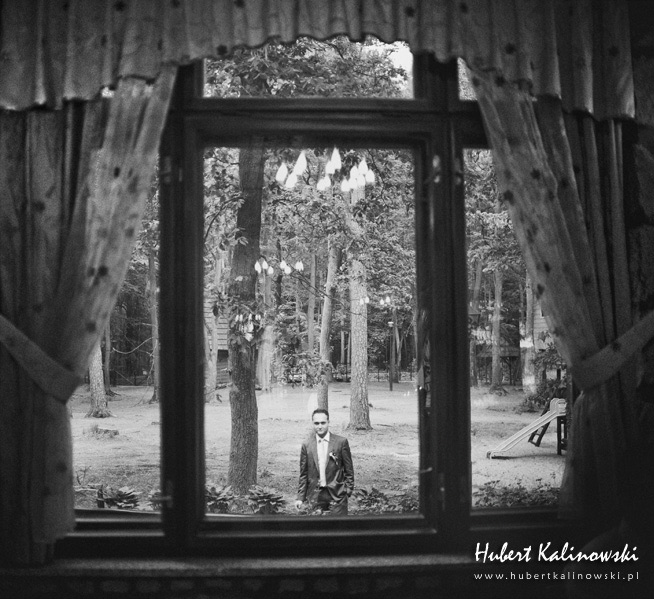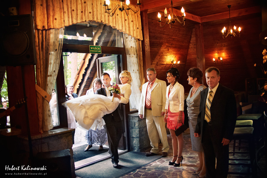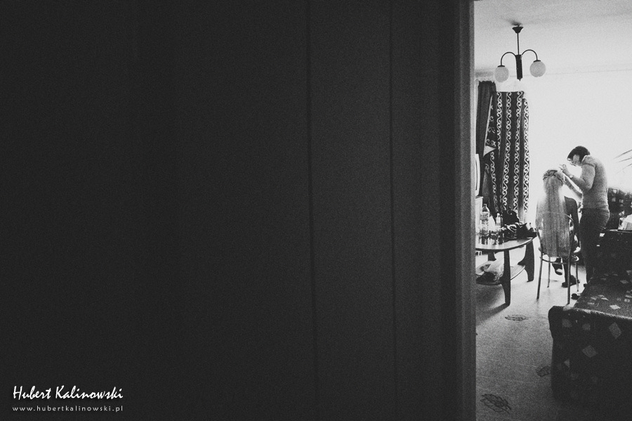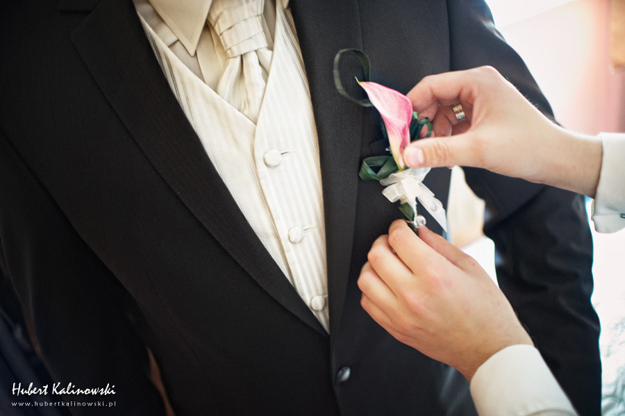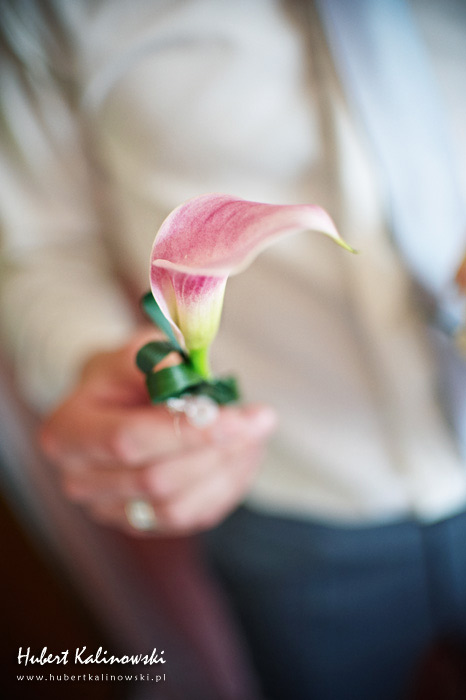 Maja i Marcin – kolejna fajna para 🙂 Pamiętam ten dzień. To była końcówka maja. Piękny słoneczny dzień. Czuło się na twarzy łaskotanie promieni słonecznych, delikatnie grzejących skórę. Ech… Miło tak powspominać, kiedy za oknem szaro, lekko siąpi deszcz, a chodzenie w koszulce na krótki rękaw spotyka się z pukaniem w czoło przez przypadkowo spotkane osoby. Pamiętam tą zdrową, ale i sympatyczną nerwówkę w mieszkaniu podczas przygotowań. Z minuty na minutę robiło się coraz ciaśniej i coraz więcej gości 🙂 To ktoś zaglądał przez lekko niedomknięte drzwi, to gwizdał czajnik z gotującą się wodą na kawę, to znowu dzwonek do drzwi, okupowana łazienka, przeciskania się ludzi w przedpokoju 🙂 Było fajnie. Sporo się działo. Wspominam też bardzo oryginalny, klimatyczny  kościół, oraz wesele w drewniano-murowanej klimatycznej sali… Pamiętam też plener. Zachmurzone lekko niebo gwałtownie przerodziło się w ulewę, która popsuła nam szyki. Dobrze, że znaleźliśmy jakieś zastępstwo w postaci pomieszczenia z dachem 🙂
