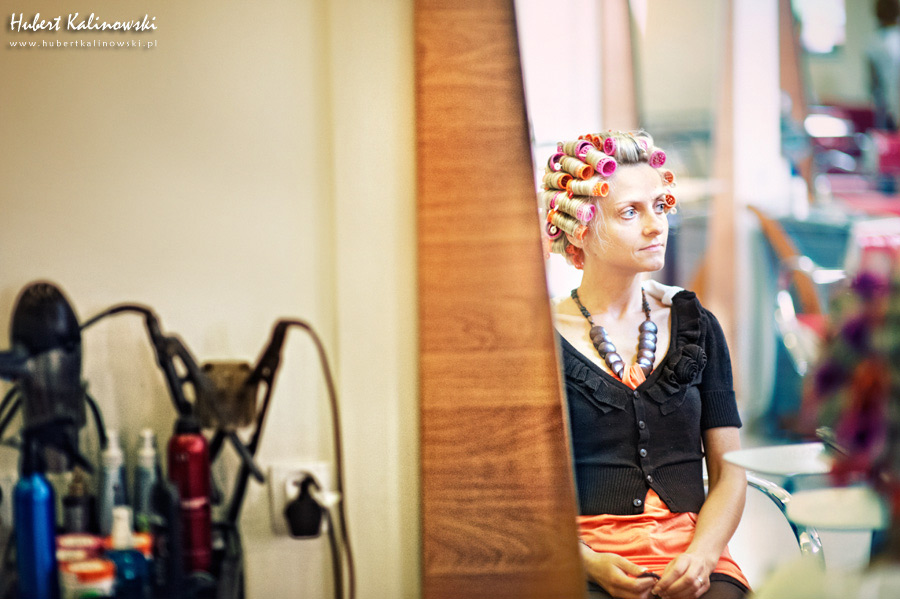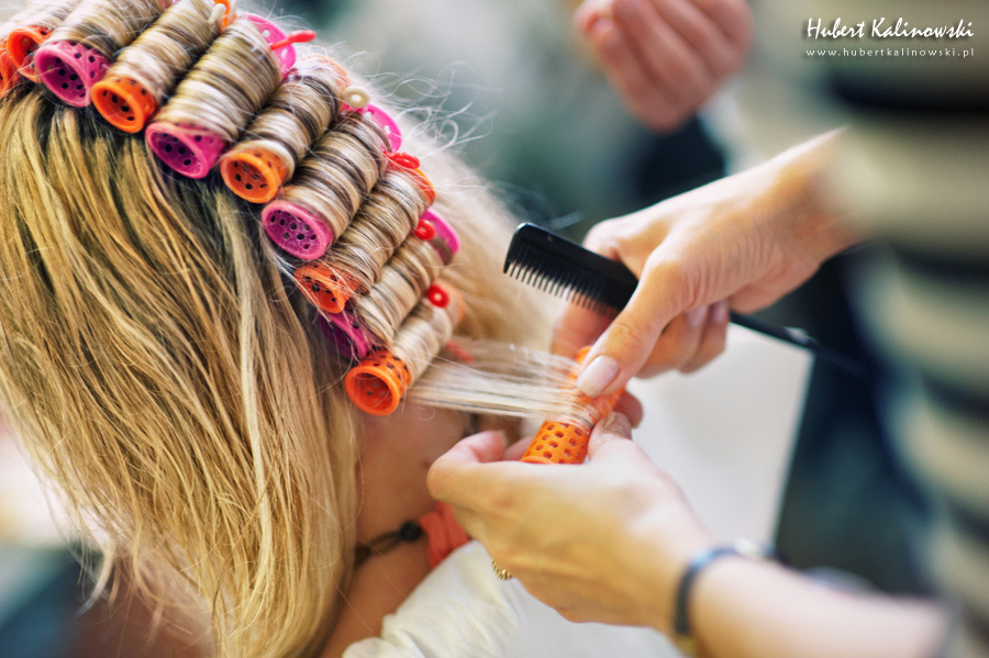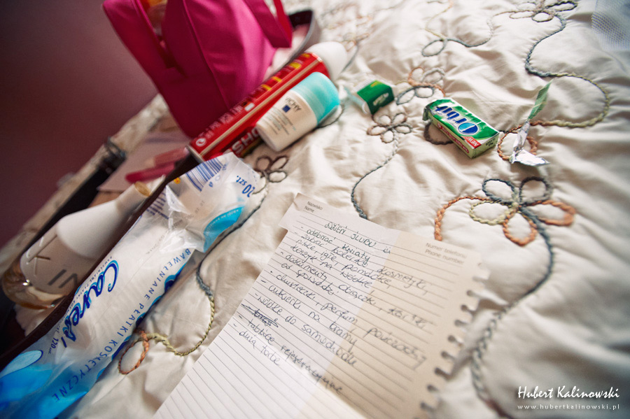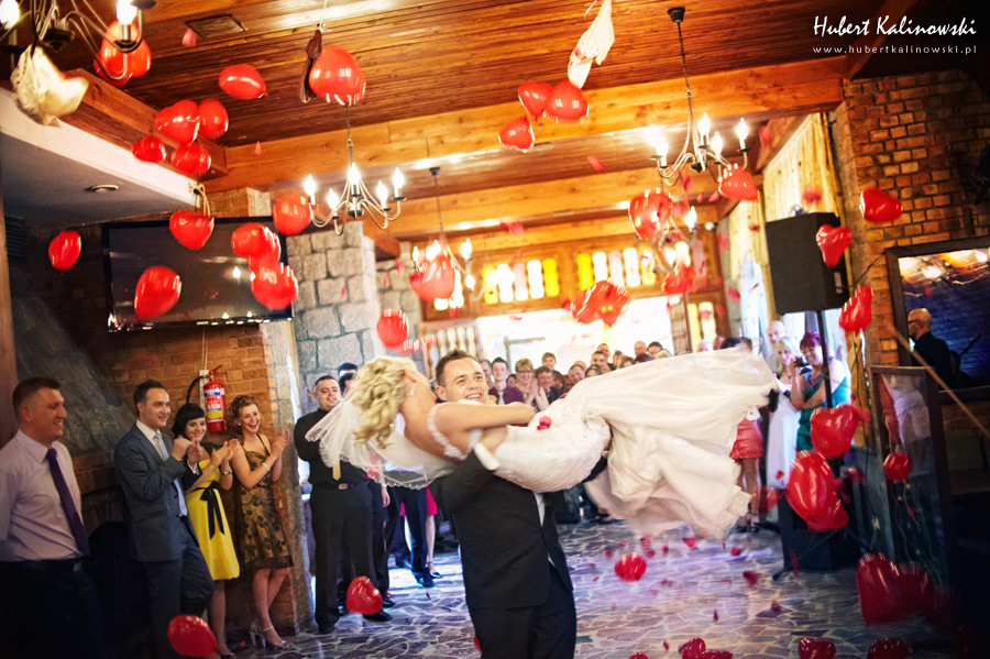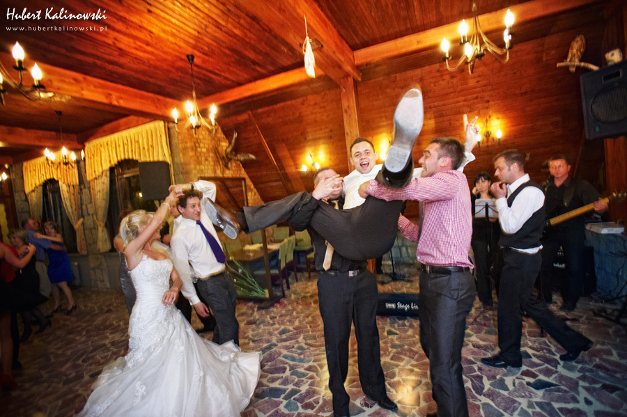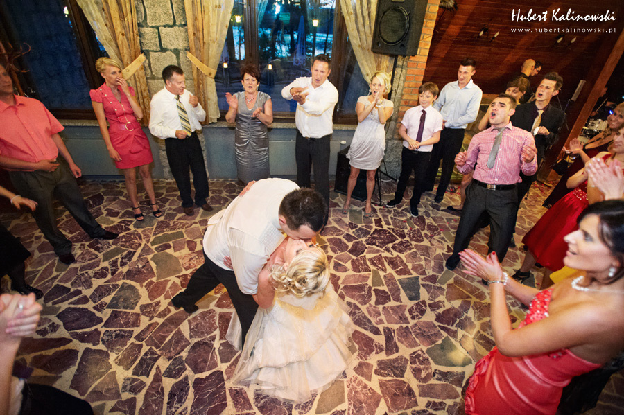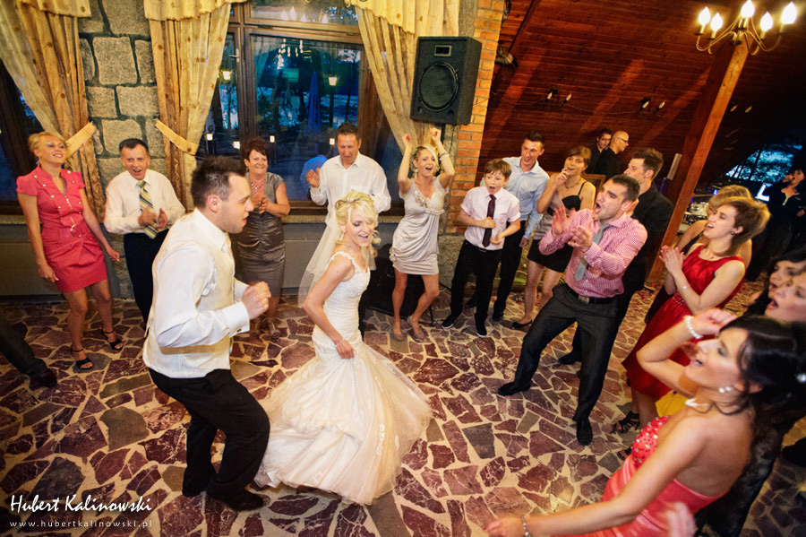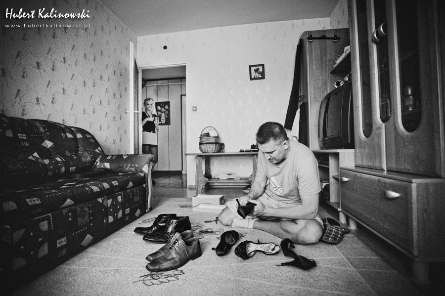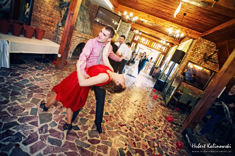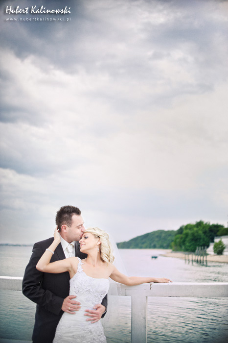 Maja i Marcin – kolejna fajna para 🙂 Pamiętam ten dzień. To była końcówka maja. Piękny słoneczny dzień. Czuło się na twarzy łaskotanie promieni słonecznych, delikatnie grzejących skórę. Ech… Miło tak powspominać, kiedy za oknem szaro, lekko siąpi deszcz, a chodzenie w koszulce na krótki rękaw spotyka się z pukaniem w czoło przez przypadkowo spotkane osoby. Pamiętam tą zdrową, ale i sympatyczną nerwówkę w mieszkaniu podczas przygotowań. Z minuty na minutę robiło się coraz ciaśniej i coraz więcej gości 🙂 To ktoś zaglądał przez lekko niedomknięte drzwi, to gwizdał czajnik z gotującą się wodą na kawę, to znowu dzwonek do drzwi, okupowana łazienka, przeciskania się ludzi w przedpokoju 🙂 Było fajnie. Sporo się działo. Wspominam też bardzo oryginalny, klimatyczny  kościół, oraz wesele w drewniano-murowanej klimatycznej sali… Pamiętam też plener. Zachmurzone lekko niebo gwałtownie przerodziło się w ulewę, która popsuła nam szyki. Dobrze, że znaleźliśmy jakieś zastępstwo w postaci pomieszczenia z dachem 🙂