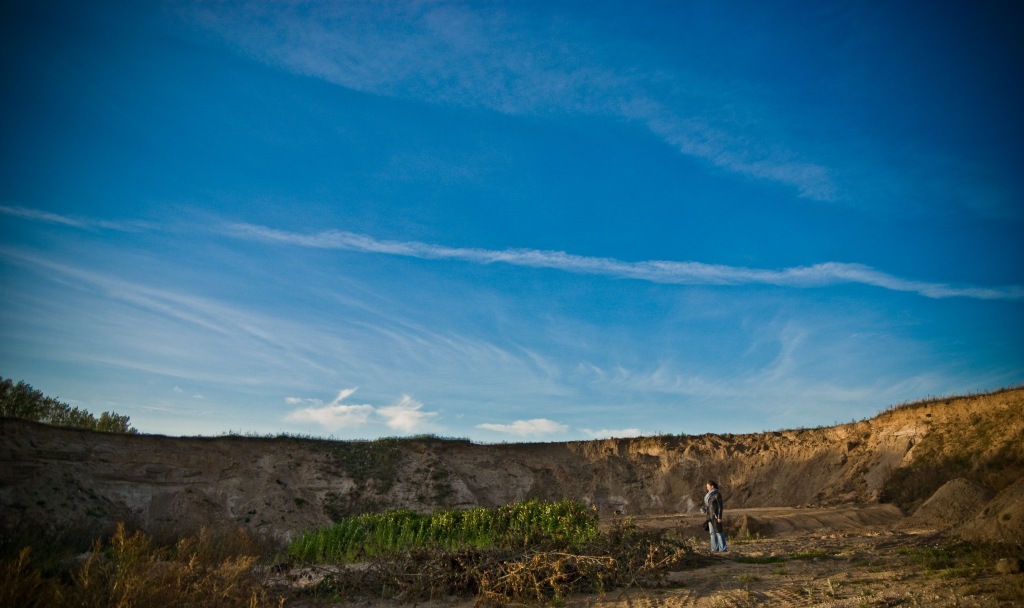 Podczas spaceru na żwirowni w Miłakowie udało mi się zrobić takie zdjęcie mojej żonie. Moja żona może i niewyraźna tam jest, ale zdjęcie w jakiś sposób mnie urzekło. Może dlatego, że udało mi się podczas obróbki znaleźć kompromis między jasnym niebem, a ciemną ziemią w taki sposób, że obie te rzeczy są doskonale widoczne, a samo zdjęcie imituje HDR 🙂