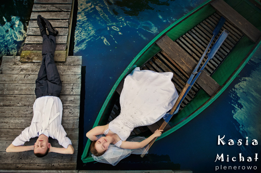 Kasia jest zbzikowana, radosna i spontaniczna z umysłem po brzegi wypchanym muzyką. Michał to człowiek spokojny, opanowany, który musi mieć wszystko przemyślane i uporządkowane. Facet o anielskiej cierpliwości 🙂 Pewnego razu Michał zaprosił Kasię na łódkę. Wypłynęli jako para. Wrócili na suchy ląd jako narzeczeni. Wybrałem się z nimi na miejsce oświadczyn i zrobiliśmy sobie kilka zdjęć 🙂
